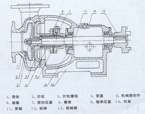 | AF型耐腐蝕離心泵結(jié)構(gòu)圖 |