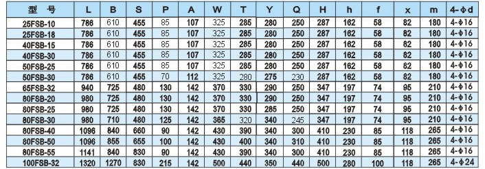 FSB氟塑料離心泵價格表D型(F26材質直連式 聚偏氟乙烯)