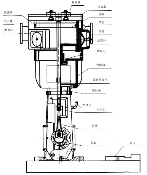 由電機通過三角帶傳動,驅(qū)動曲軸滑塊機構(gòu)作往復(fù)式運動。滑塊將往復(fù)運動通過活塞桿,傳遞給活塞,安裝有碳四氟活塞環(huán)的活塞在氣缸內(nèi)往復(fù)運動,形成氣缸內(nèi)氣體不斷壓縮,并通過軸向或縱向分布的進排氣閥組完成吸排氣工作,從而獲得真空。由于活塞環(huán)采用自潤滑碳四氟材料,所以氣缸內(nèi)無需潤滑。